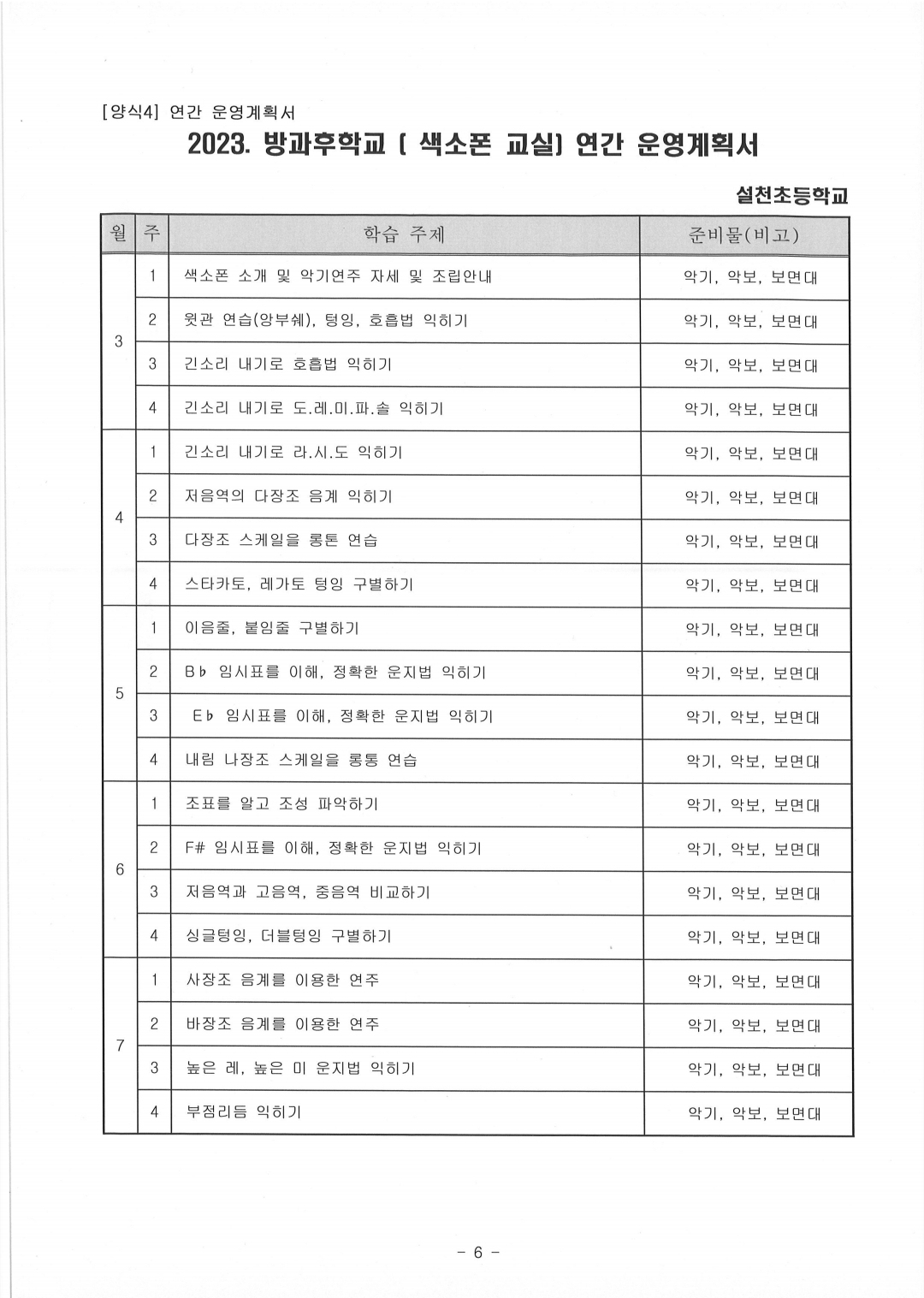 2022. 방과후학교 색소폰교실 활동 공개 계획