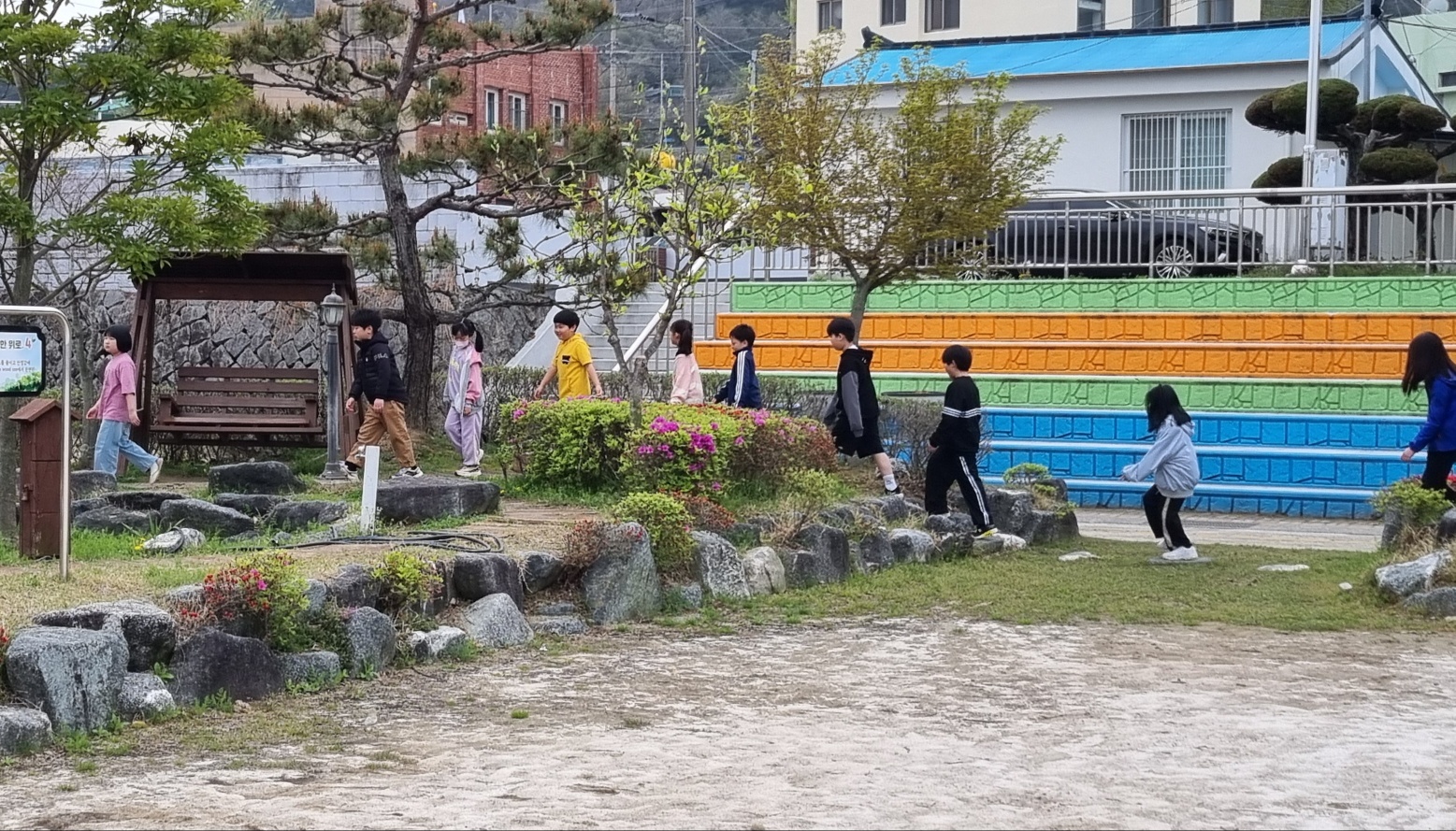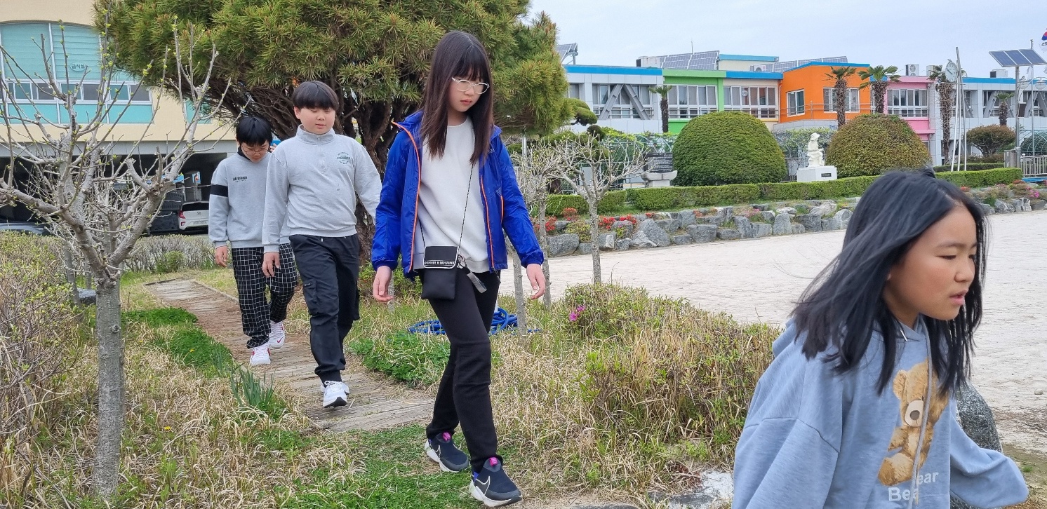 육을 실천하려고 합니다. 기후천사단 발대식을 마무리 하며 학교숲과 행복텃밭을 관찰하였고, 숲체험이 자연스