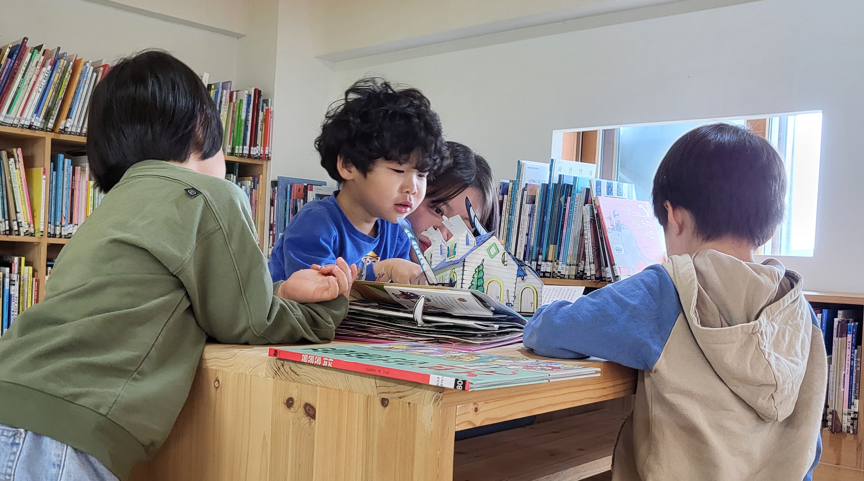 유치원생들이 유치원 선생님과 함께 도서관에 방문하였습니다.