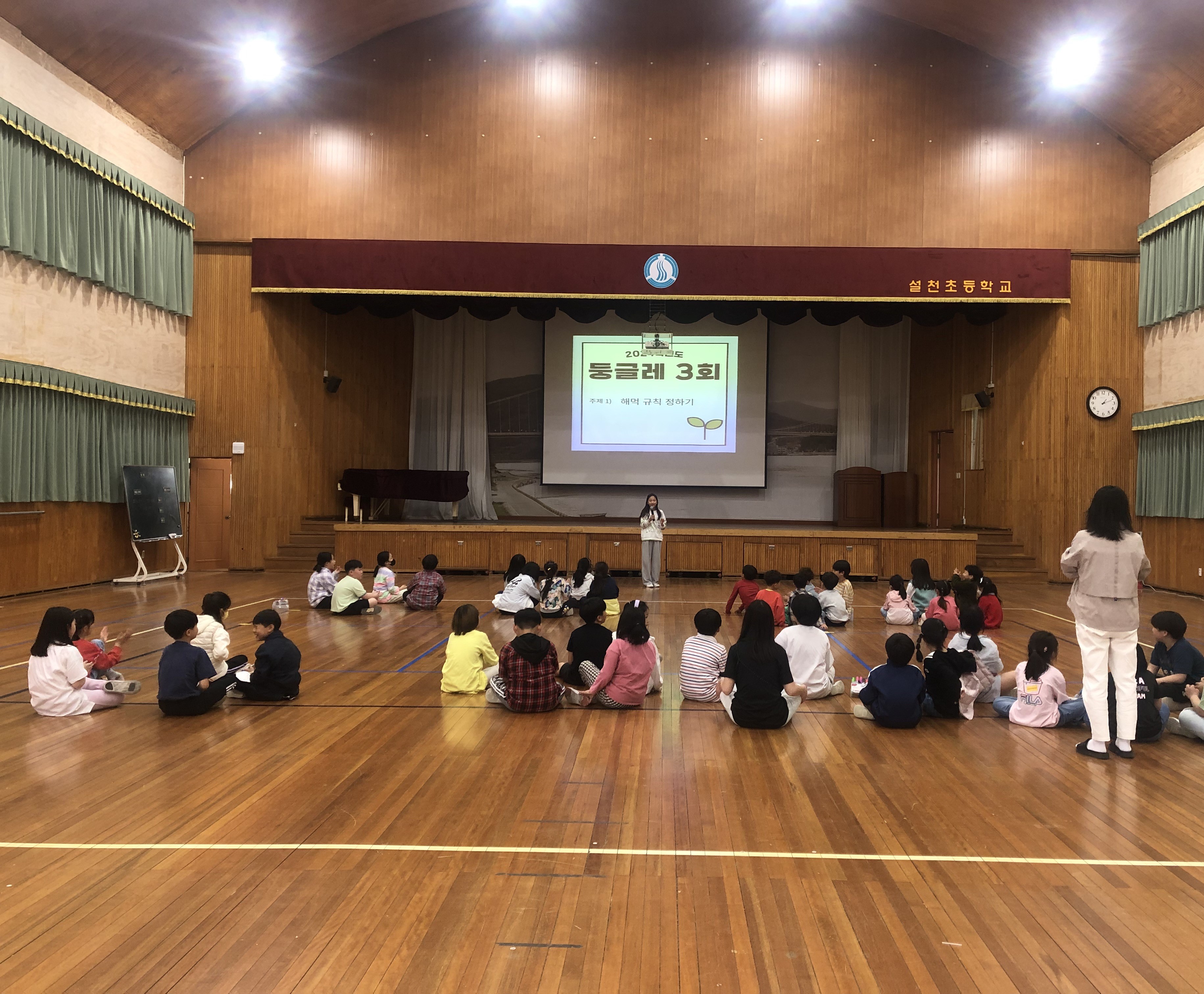 1. 일시: 2024. 4. 17.(수) 5교시 2. 장소: 덕진관 3. 대상: 전교생 4. 내용 제 3회 둥굴레 학생 다모임이 열렸습니다. 학생 다모임에서는 ‘해먹 규칙을 정하