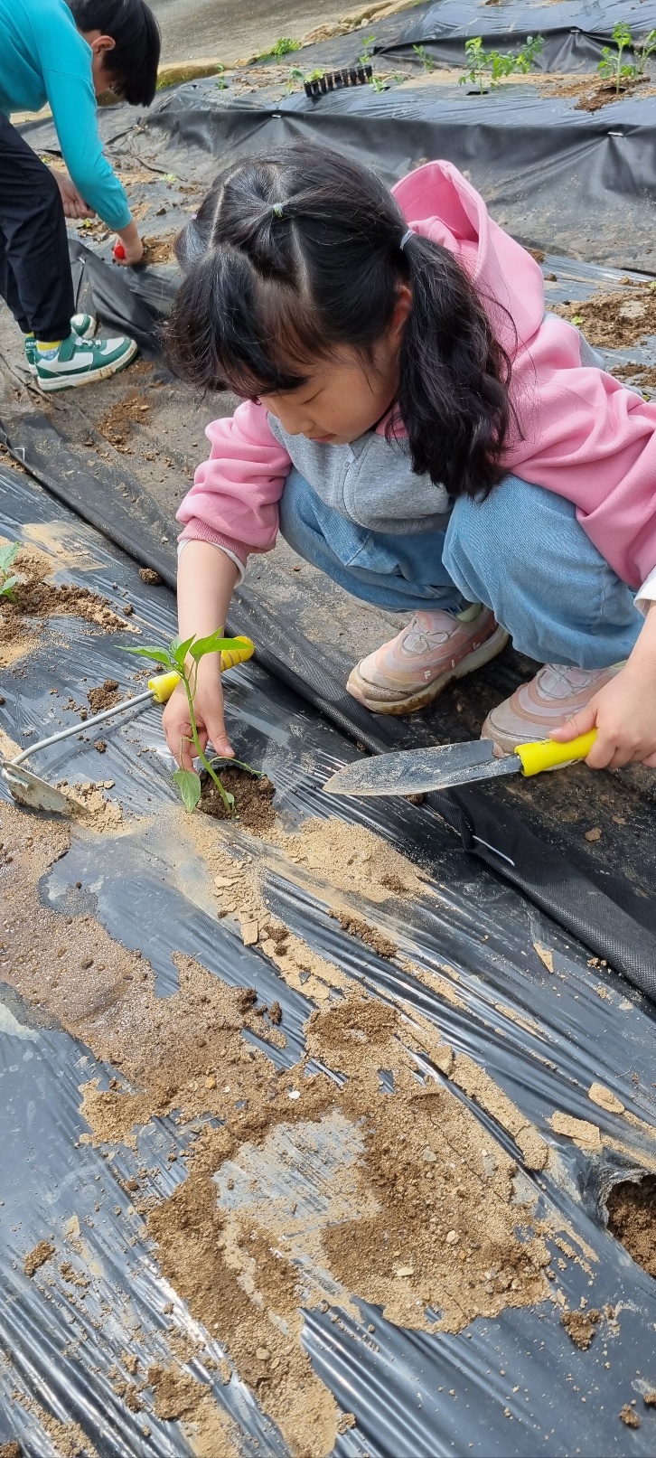 어도 모종이 들어갈 자리가 마련되어 수월하게 심었습니다. 모종을 심는 활동이 첫 단