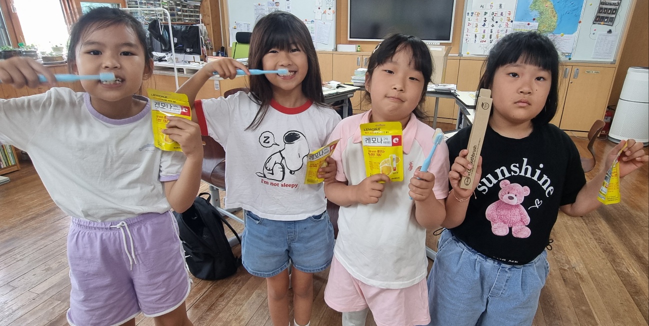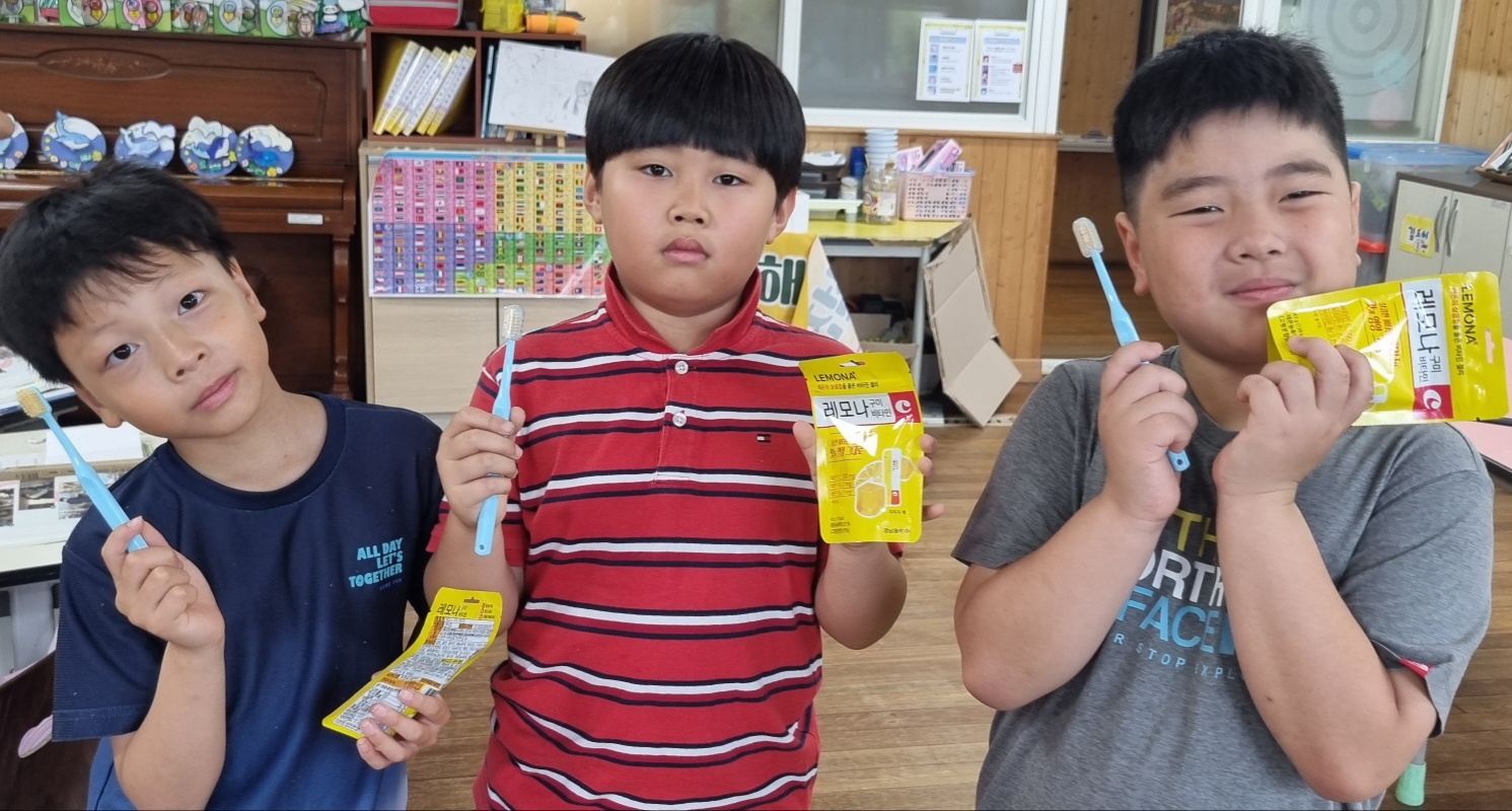 '탄생' 미션을 수행한 기념으로 기념품(건강 챙김 비타민젤리, 환경친화 칫솔)을 받고