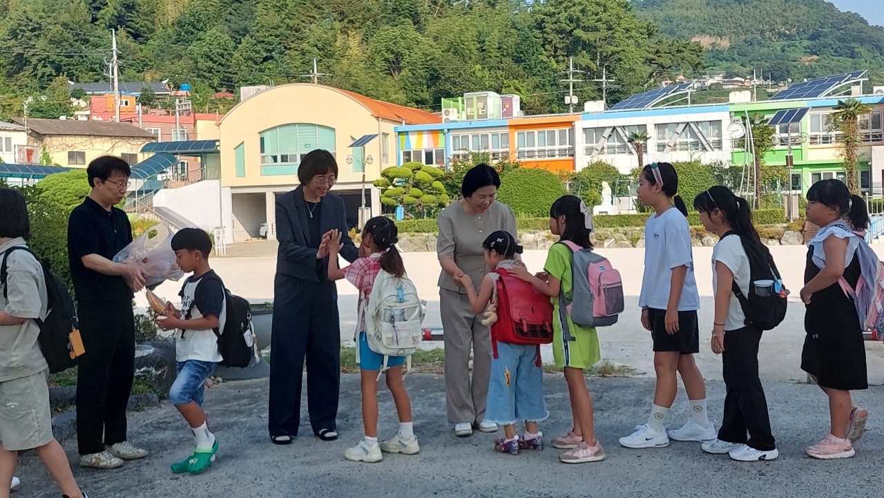 녹음이 짙게 무르익은 설천초등학교는 행복한 등굣길 아침맞이로 9월을 시작하였습니다. 여름의 더위가 물러서기 아쉬운 듯 했지만 점점 높아져 가는 하늘이 우리 곁에 가을이 맞닿아 있음을 알게 해줍니다.