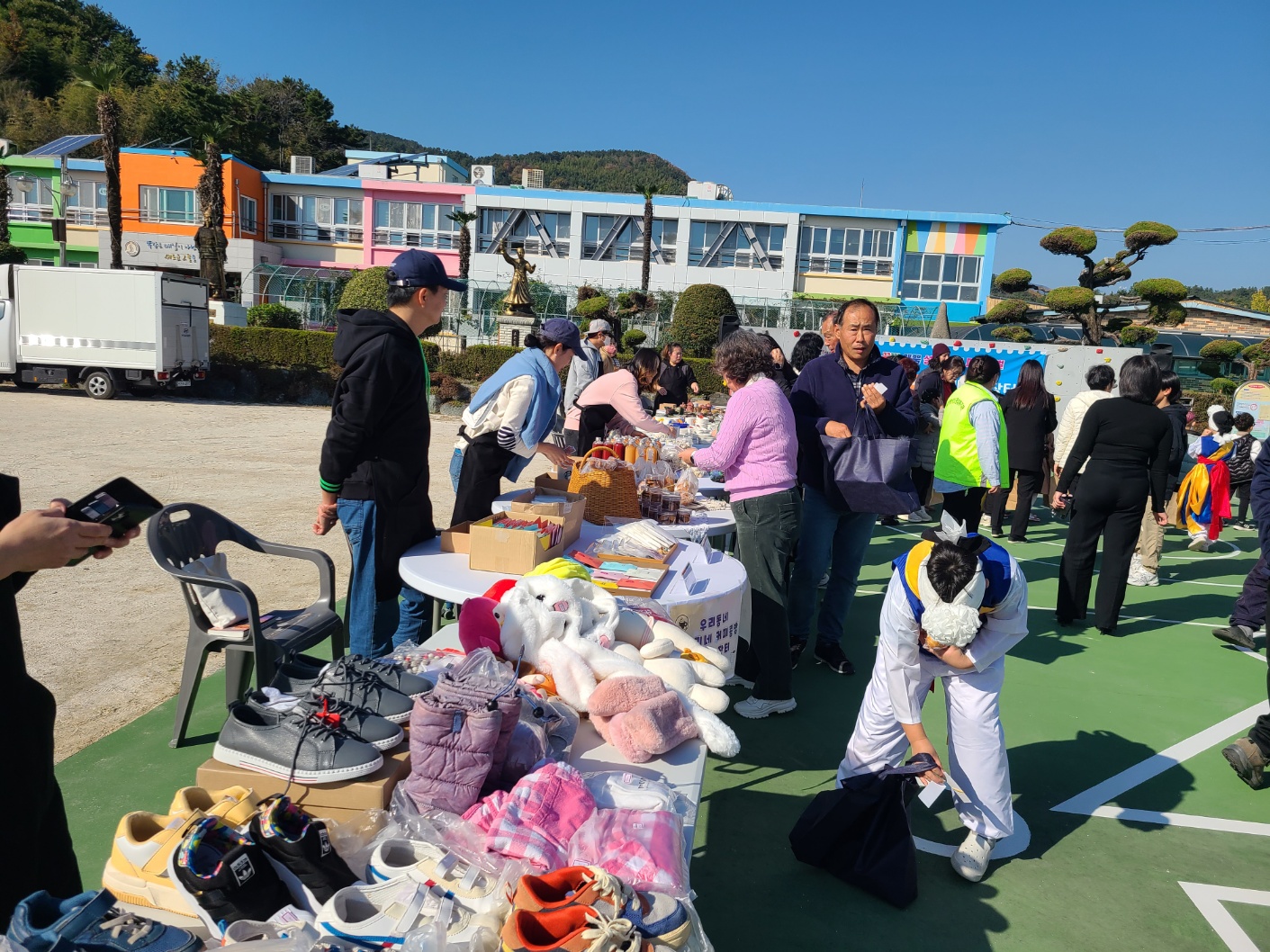 아나바다 장터에는 학생들이 도서, 문구, 인형, 가전제품, 조리 기구 등 다양한 종류의 물품을 기부했습니다. 뿐만 아니라 학부모와 지역민들이 적극적으로 참여하여 빵, 쿠키, 유자청, 수제차 등 직접 만든 제품과 화장품, 커피 등 지역 가게의 기부, 가족사진 촬영 재능기부, 지역민 도예 동아리' 흙 이야기' 회원들의 작품 기부와 먹거리 장터 운영, 남해장애인종합복지관과 로뎀지역아동센터에서 우리 아이들을 위하여 먹거리를 만들어 주어 겨울의 따뜻한 햇살과 함께 오감 만족의 따뜻한 자리가 되었습니다.